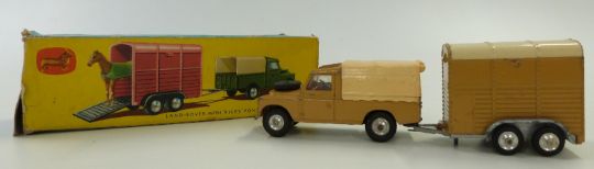 Corgi Toys diecast model Gift Set No.2 Land Rover with Rice's Pony Trailer and Pony, with light brown body and cream canopy and roof, in original box.