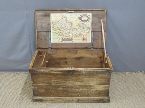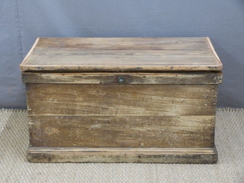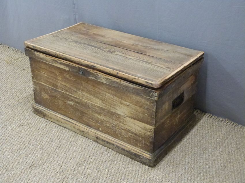 A 19thC pine trunk or coffer with drawers to one end, L89 x D50 x H48cm