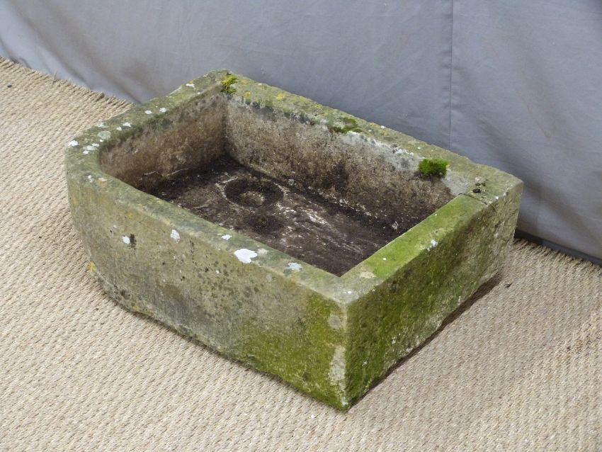 Carved natural stone corner trough, 72 x 53 x 22cm