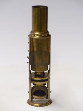 19th century brass field microscope with six various lenses, in mahogany case, length of case 18cm