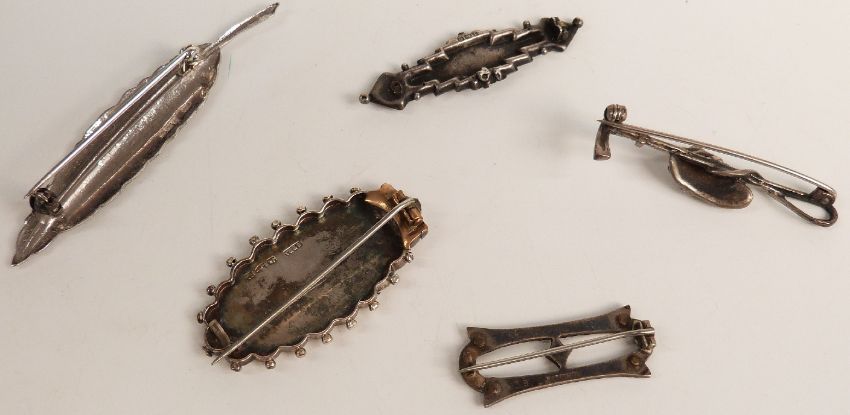 A collection of silver jewellery including rings, brooches, Victorian good luck brooch, marcasite brooch, pendant, earrings, spoon etc
