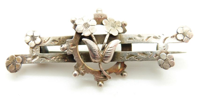 Scottish hallmarked silver pin by Henderson & Horner Bros, Glasgow, an Edwardian silver brooch (Birmingham 1908) and another silver brooch