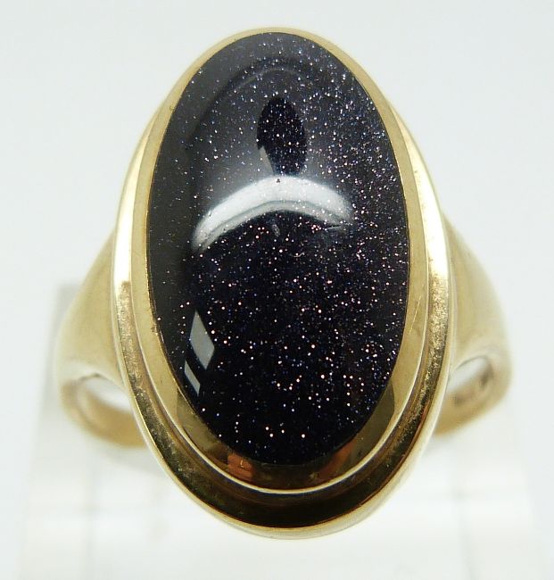 A 9ct gold ring set with faux purple sunstone, 7.6g (size X)