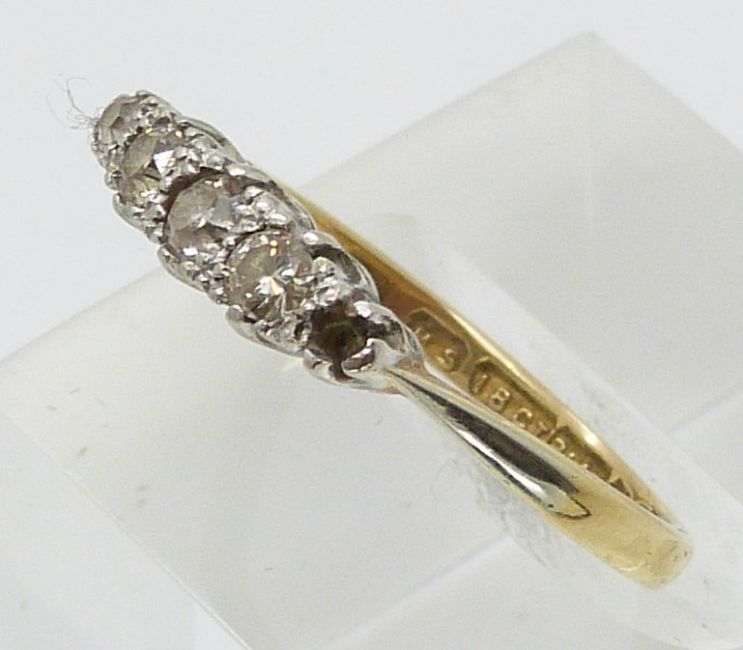 An 18ct gold ring set with diamonds in a platinum setting (size N)