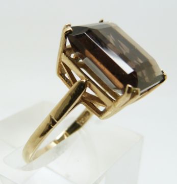 A 9ct gold ring set an emerald cut smoky quartz (size N)