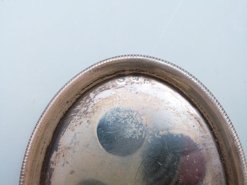 Austrian white metal miniature or dolls' house tea set on tray with Austrian W 4 800 grade silver marks, length of tray 8cm, 40g