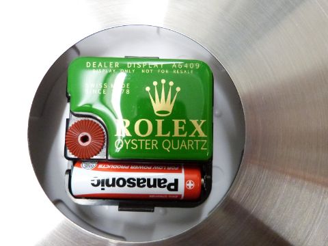 Rolex Oyster Perpetual GMT-Master II dealers shop display advertising wall clock with black face, luminous hands and markers, date aperture, blue and red 'Pepsi' bezel and stainless steel case, 34cm in diameter.