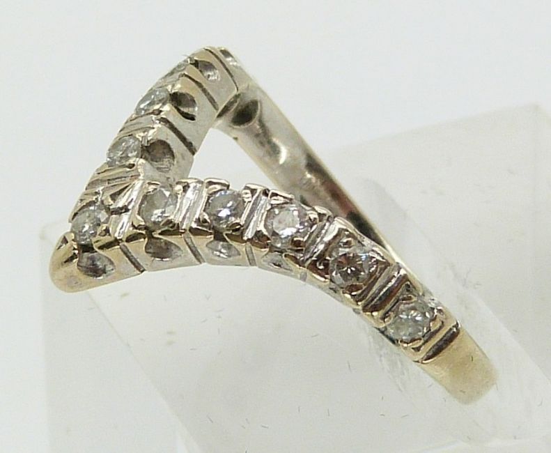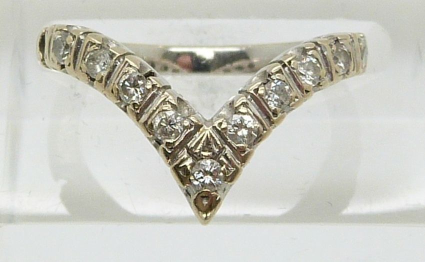 An 18ct white gold ring set with diamonds in a V shape (size I)