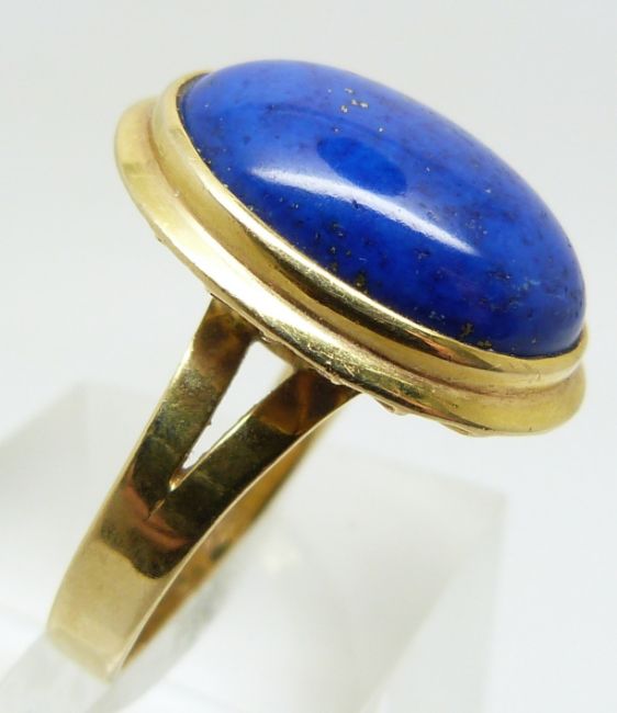 A 14ct gold ring set with a lapis lazuli cabochon (size P)