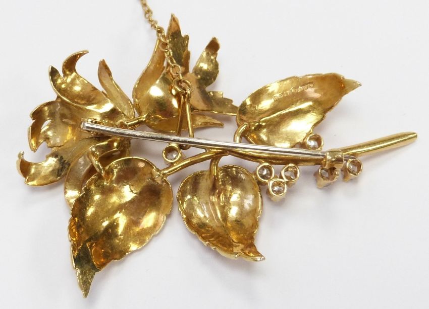 An 18ct gold brooch in the form of a flower set with pearls and diamonds, 13.4g, width 5.5cm x length 4cm