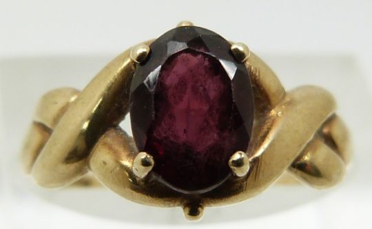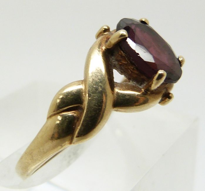 A 9ct gold ring set with a garnet (size M/N)