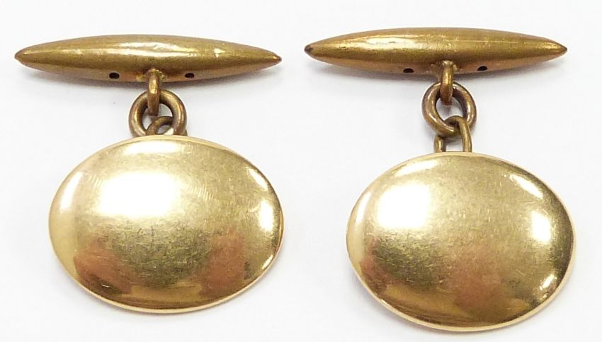 A pair of 18ct gold and rolled gold cufflinks, 6g