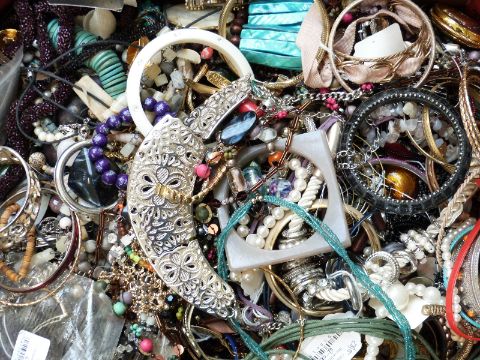 Antiques to include sections of jewellery, silver, watches, clocks, coins & textiles