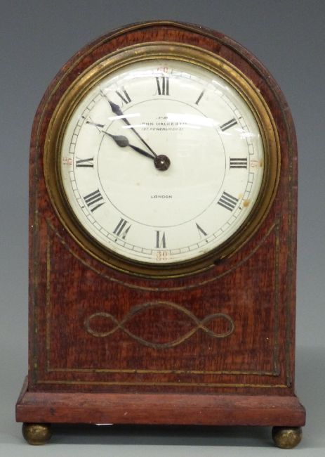 John Walker Ltd, London inlaid single train mahogany mantel clock, 19cm tall