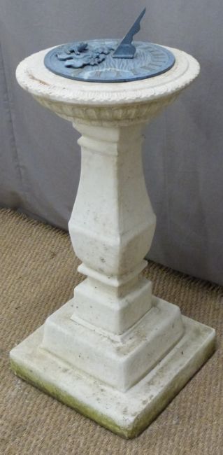 Classical style garden sundial on baluster shaped square column, height 101cm