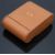 Asprey gold plated travelling alarm clock with gold and luminous hands, Arabic numerals, white dial and brown leather case/ stand, 57 x 57mm.