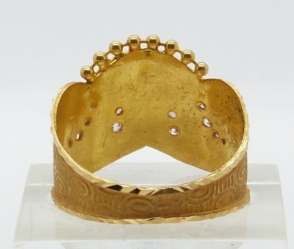 A yellow metal Indian ring set with cubic zirconia, 3.2g (size R)