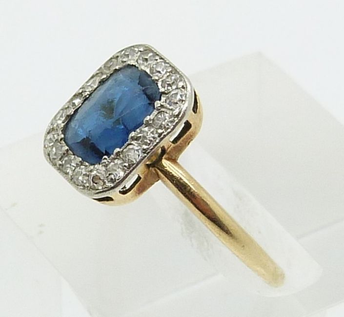 An 18ct gold ring set with paste surrounded by diamonds, size I/J