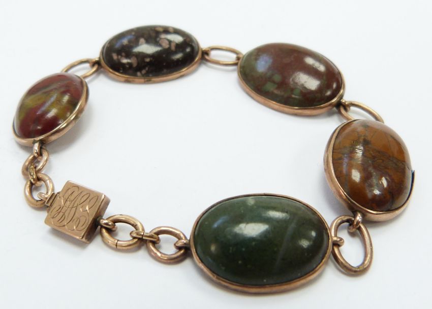 Victorian rose gold bracelet set with five agate cabochons