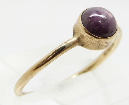 A gold ring set with a star ruby cabochon, size P