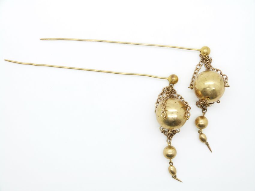 A pair of Georgian/ Victorian hat pins with sphere drop sections
