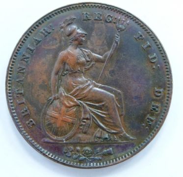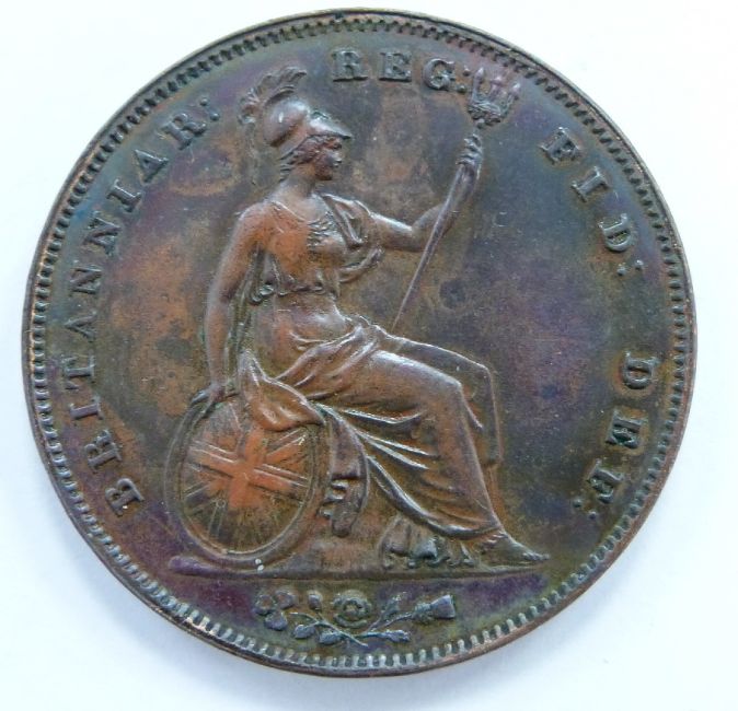 Queen Victoria 1851 copper penny, OT, medium distance colon after DEF, unc, some lustre