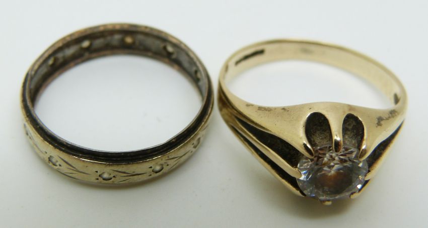 A 9ct gold ring set with paste (size N) and a 9ct gold eternity ring, 5.1g (size N)