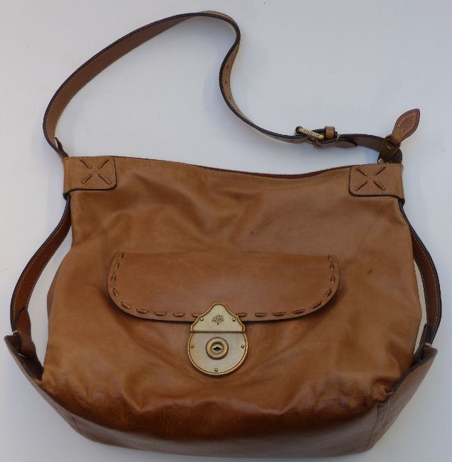 Mulberry leather handbag in light tan finish with antique brass coloured fittings, with care label, customer service label and original dust bag. Internal label and metal tag with no 199690