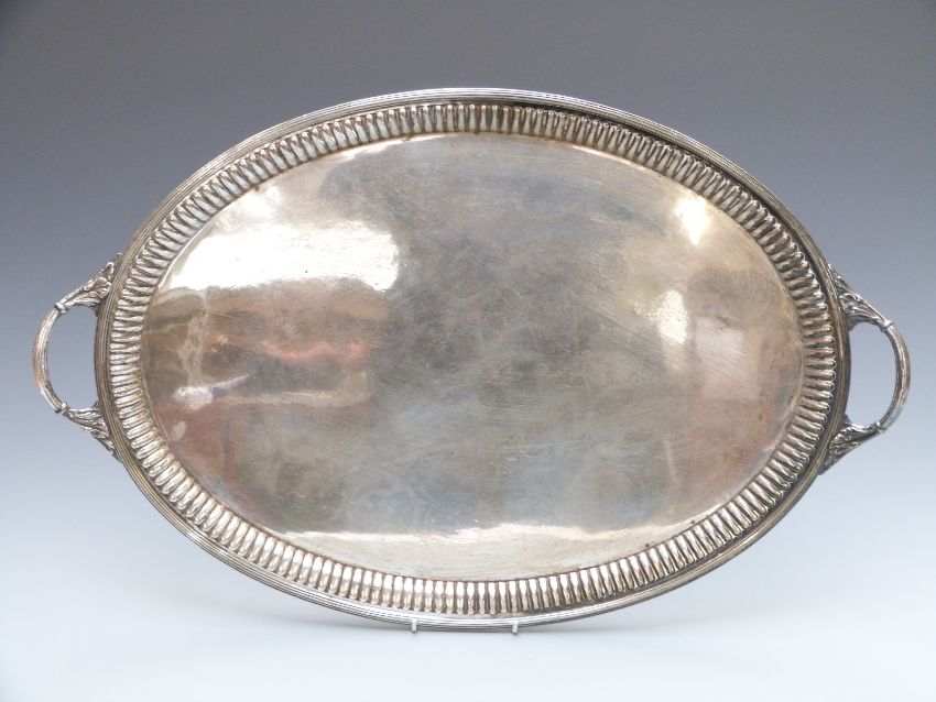 Mappin Brothers silver plated twin handled oval tray, width 64cm