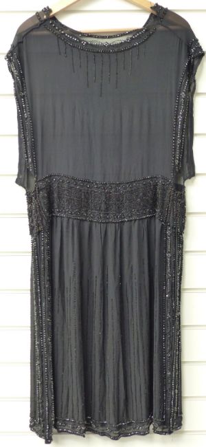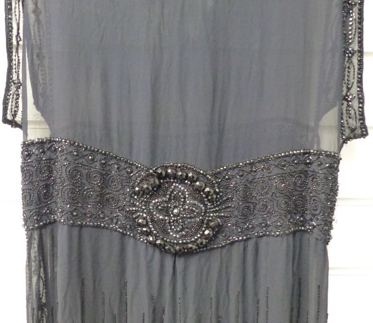 Art Deco flapper dress with beaded jet or similar belt, hem etc