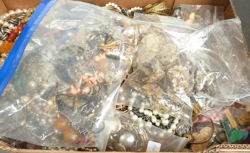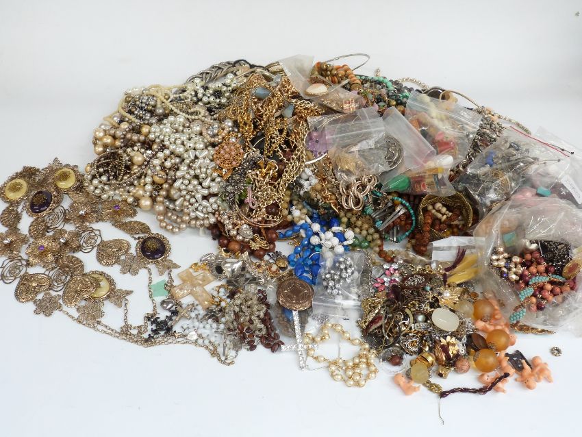 A collection of costume jewellery including vintage brooches, earrings, beads, bangles etc