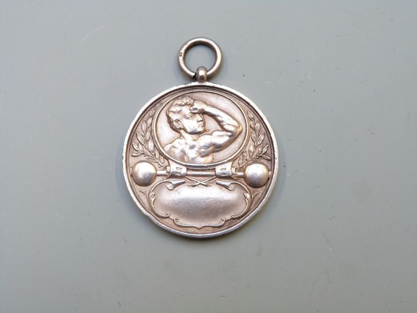 Hallmarked silver body building medal, Birmingham 1924, diameter 4cm, weight 26g
