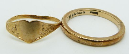 A 9ct gold ring and a 9ct gold signet ring, 2.8g