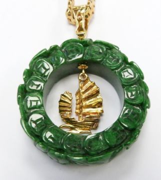 An 18ct gold necklace with a jadeite style pendant