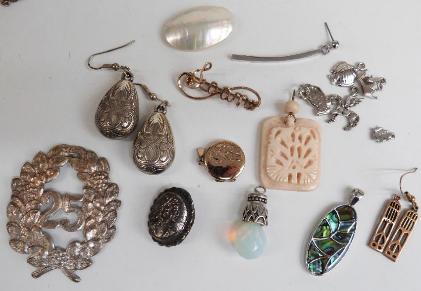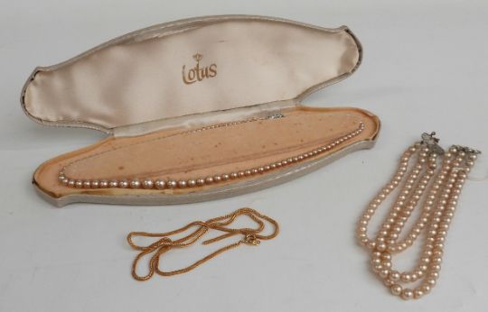 A collection of costume jewellery including faux pearls, necklaces, brooches etc