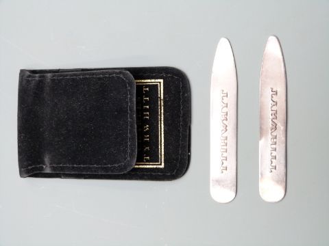 A pair of hallmarked silver Charles Tyrwhitt collar stiffeners in original slip case
