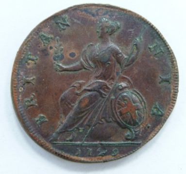 George II 1729 halfpenny, young cuirassed bust, toning and some lustre, VF