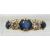 An 18ct gold ring set with three round cut sapphires, the centre stone approximately 0.6ct, and two old cut diamonds each approximately 0.2ct