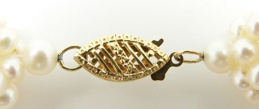 A necklace made up of pearls in clusters with 18ct gold clasp, 22.5cm drop