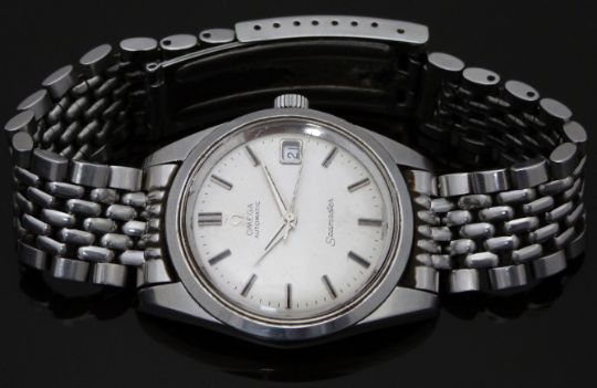 Omega Seamaster gentleman's automatic wristwatch ref. 166.010 with date aperture, two-tone dauphine hands and baton markers, silver dial, stainless steel case and signed 24 jewel calibre 562 movement, case diameter 35mm, serial number 23826993.