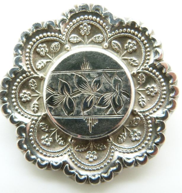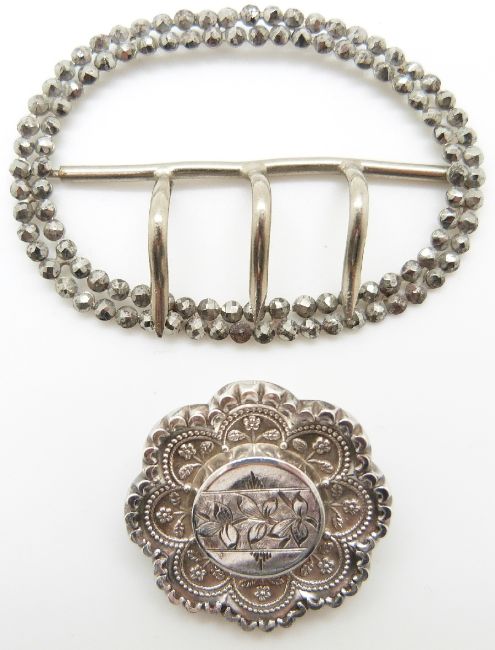 Victorian cut steel buckle and a hallmarked silver Victorian mourning brooch, Birmingham 1881