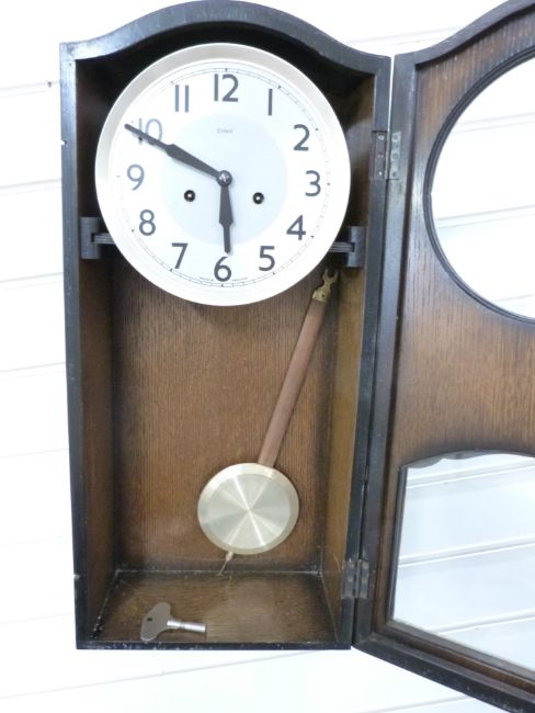 Two-train Art Nouveau style wall clock with bold Arabic numerals, 58cm tall