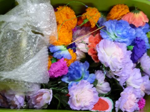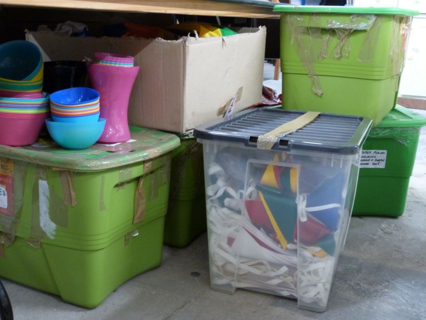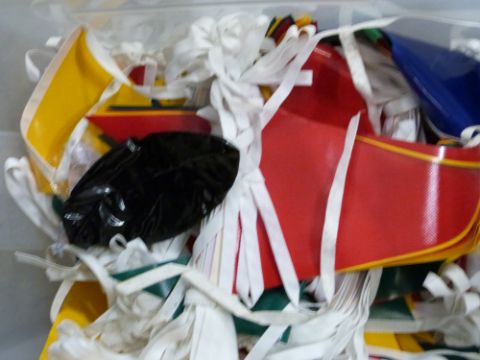 Large quantity of bunting, flowers, plastic cups, beach balls etc, suitable for a party