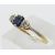 An 18ct gold ring set with a rectangular cut sapphire and two diamonds in a platinum setting (size R)