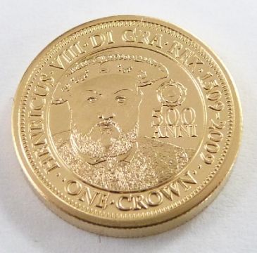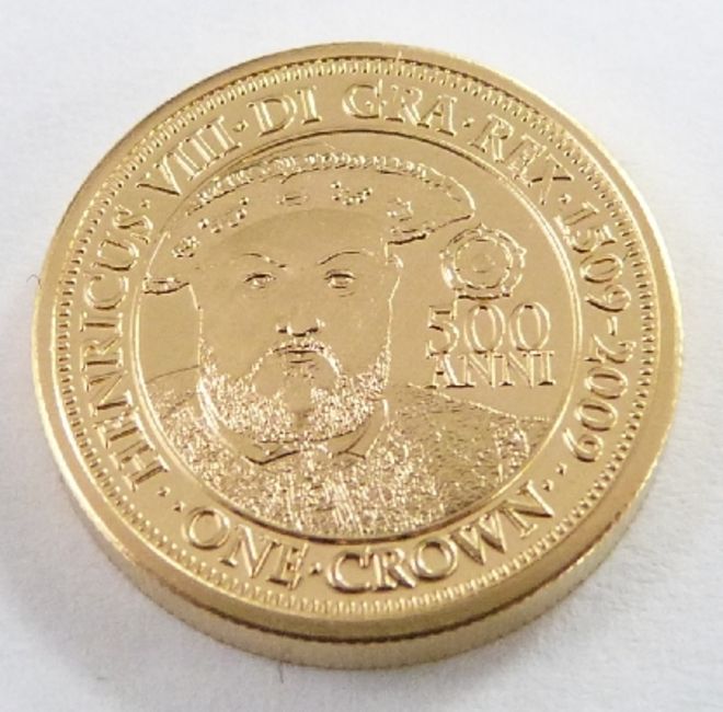Tristan da Cunha Accession to the Throne of Henry VIII 22ct gold one crown coin, 5g, quadruple thickness, cased with certificate