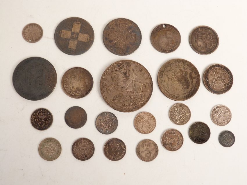 A small collection of largely UK silver coins to include George III shilling, Victorian half crown, florins, a Colonial 1843 three halfpence, Edwards VII 1906 shilling etc, 120g