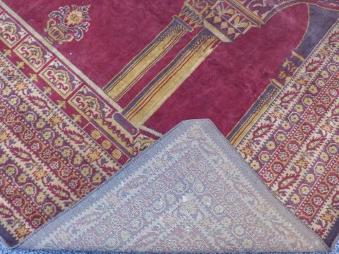 Persian fine wool/silk wall hanging with central design of the interior of a mosque, 195x128cm