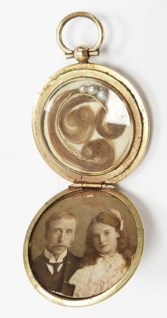 Victorian locket set with hair, a heart locket and a carnelian agate brooch