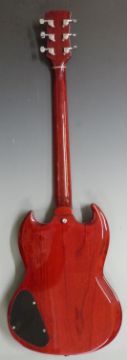 Electric lead / rhythm guitar by Vintage, in lacquered teak wood effect finish, with soft gig bag