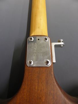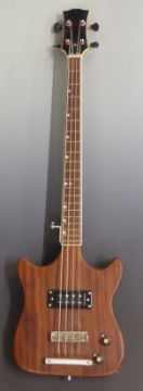 Teak bodied electric bass guitar, Japanese made, with steel adjustable neck, serial no 0082837